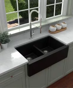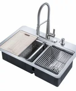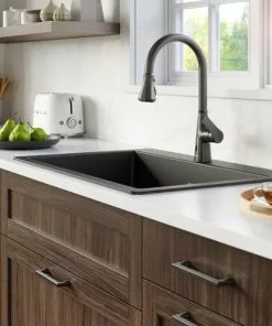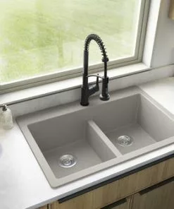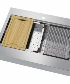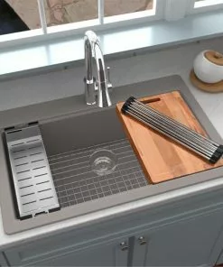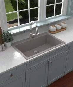 Tuscany Dual Mount 33″ Concrete Quartz Composite 1-Hole Single Bowl Workstation Kitchen Sink