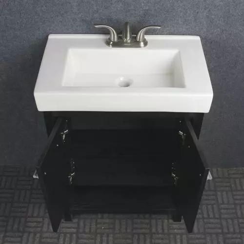 Verona 24-inch vanity is a free standing vanity with cUPC certified extra thick profile ceramic top drilled for a 4-inch faucet spread, two soft-close doors, one open-shelf for extra storage and mirror included