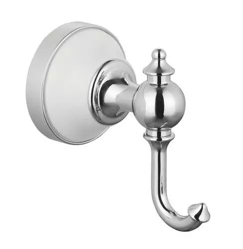 The Winterset single robe hook in a polished chrome finish has a sleek look that will update any bathroom.